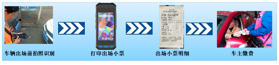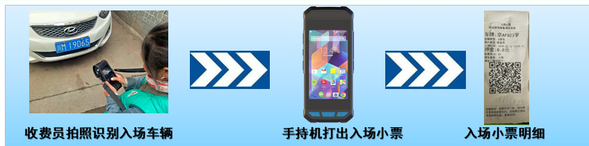 車輛入場(chǎng)——地磁檢測(cè)啟動(dòng)——提交數(shù)據(jù)至后臺(tái)——手持端車位報(bào)警——手持機(jī)掃描車牌(錄入)——打印小票
