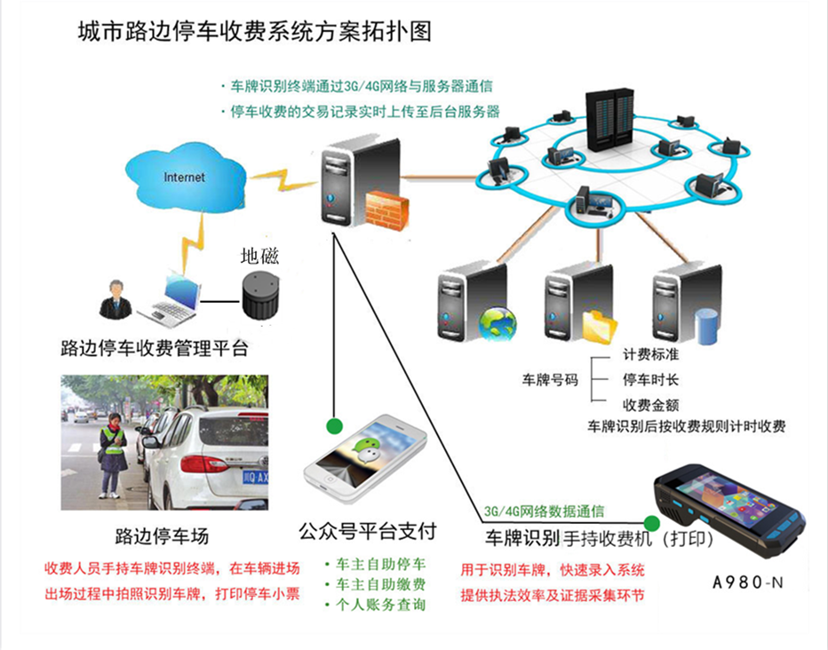 城市占道停車管理系統(tǒng)”是通過(guò)移動(dòng)手持智能PDA終端設(shè)備、地磁車位檢測(cè)器、計(jì)算機(jī)信息系統(tǒng)、依托現(xiàn)代網(wǎng)絡(luò)寬帶技術(shù)以及BN-IOT技術(shù),實(shí)現(xiàn)對(duì)城市路邊占道停車場(chǎng)及車輛的智能化、信息化、科學(xué)化、嚴(yán)謹(jǐn)、規(guī)范管理的系統(tǒng)平臺(tái)。